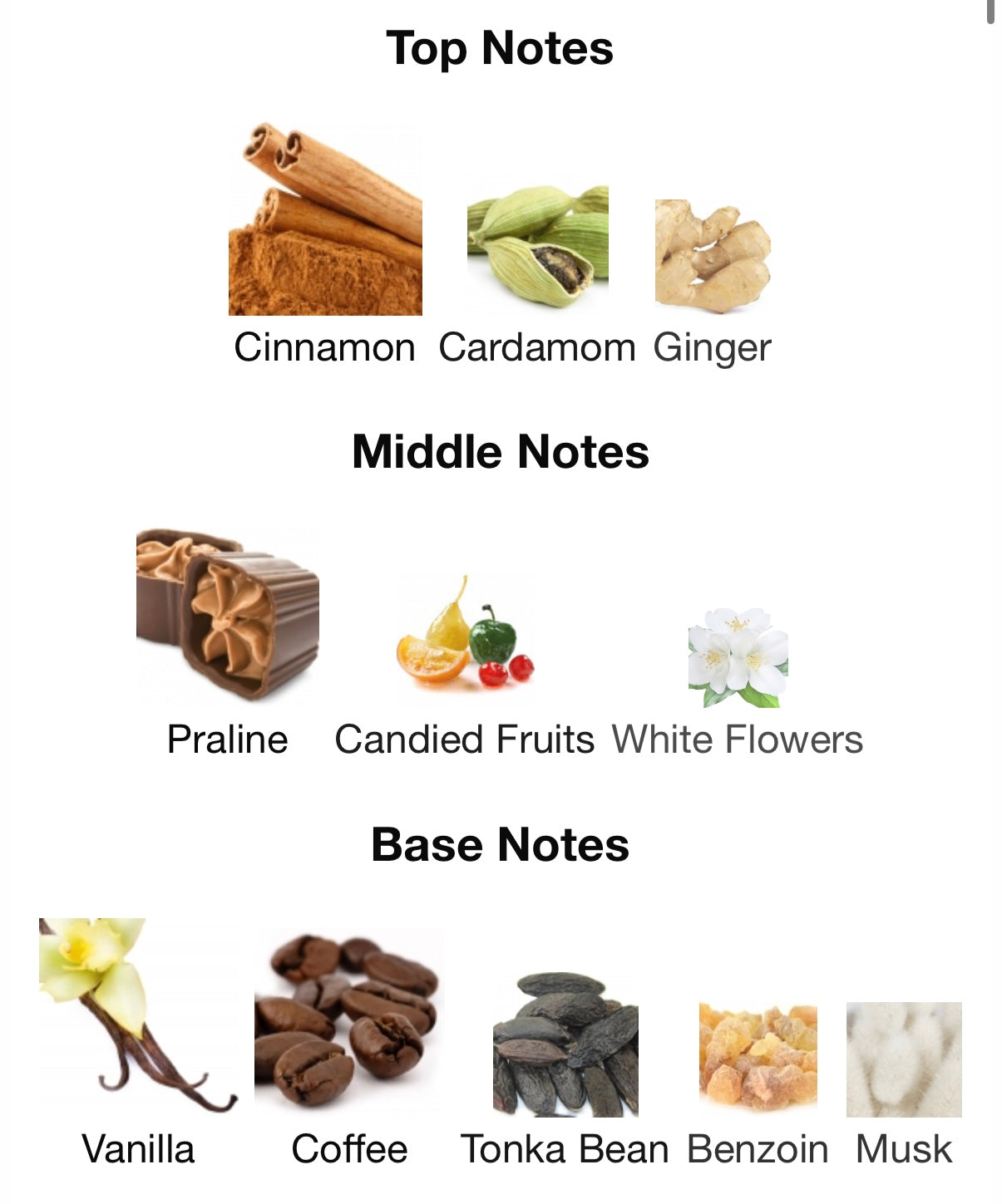 BASE NOTES: VANILLA, MUSK, BENZOIN, COFFEE, TONKA BEAN