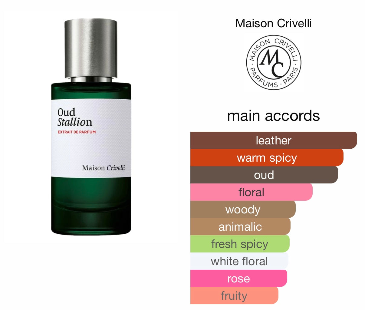 A warm spicy leather and oud heavy nuclear fragrance with sweet floral , rose accords